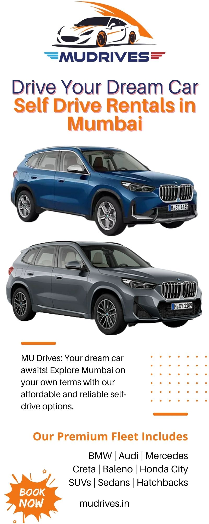 Ready to elevate your driving experience? At MU Drives, you can Drive Your Dream Car – Self Drive Rentals in Mumbai. We provide a premium selection of vehicles, meticulously maintained for your comfort and safety. Forget the hassle of ownership and embrace the freedom of renting. Explore Mumbai in style and create unforgettable memories with our top-tier self-drive service.
